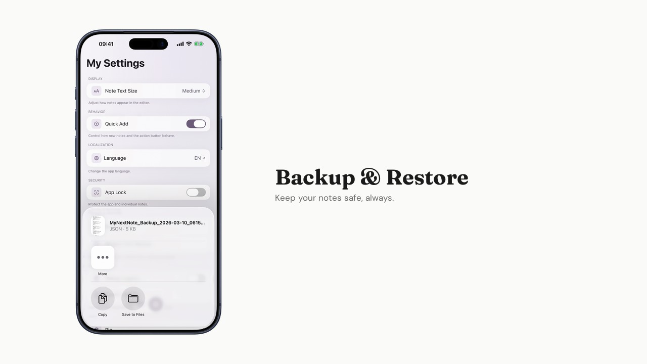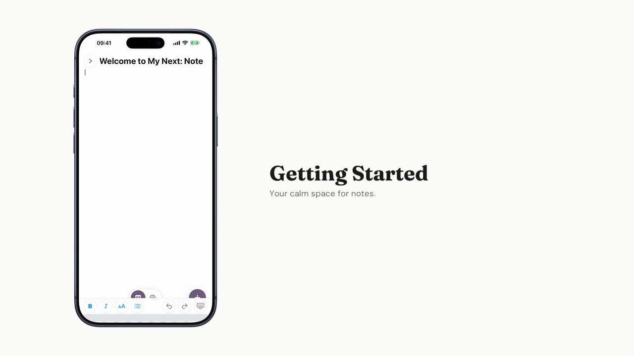 Not another productivity tool with folders and tags. My Next: Note gives you a blank page and gets out of the way.