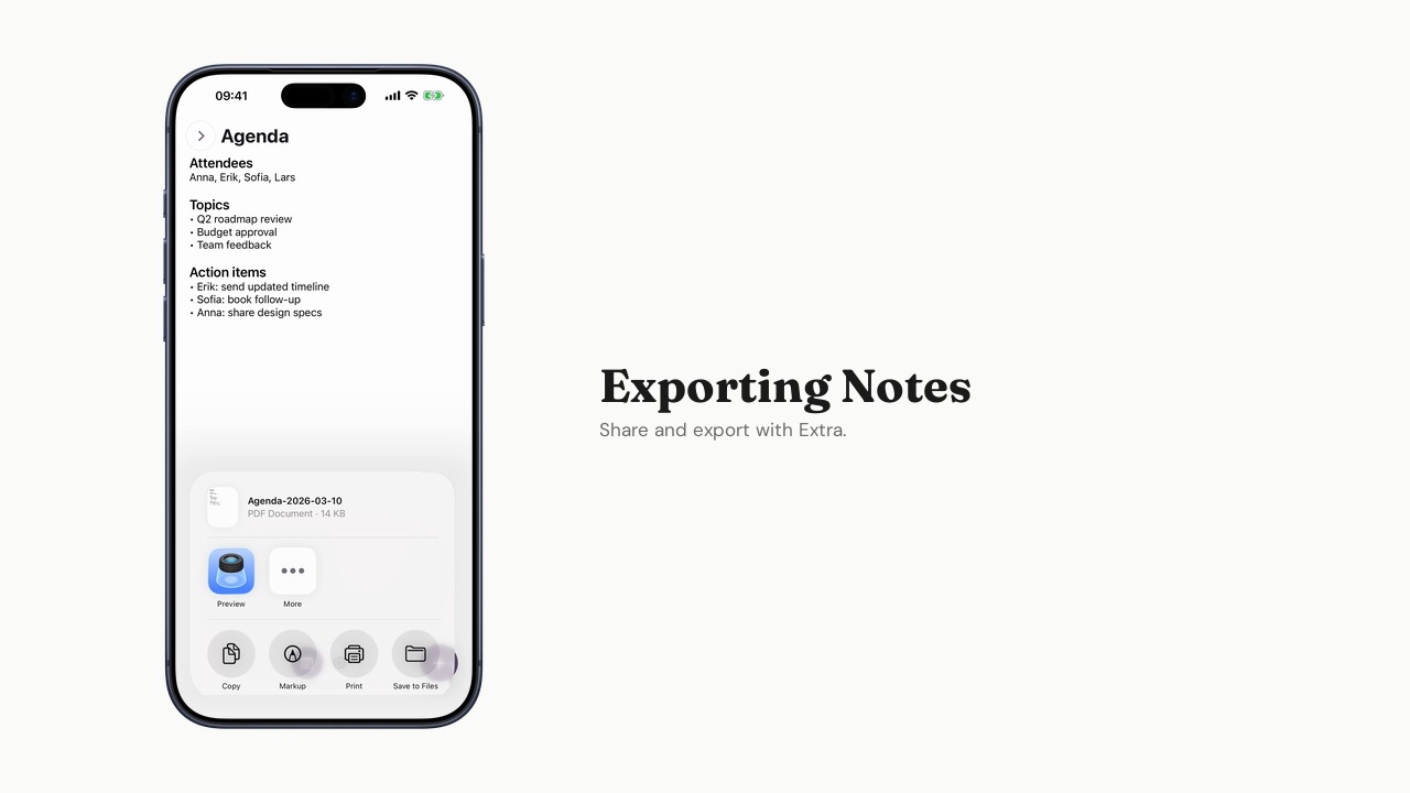 Share and export notes from the app.