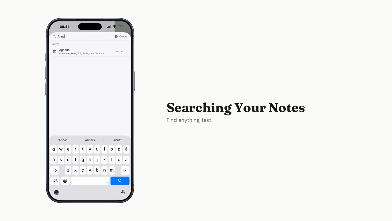 Find any note quickly with full-text search.
