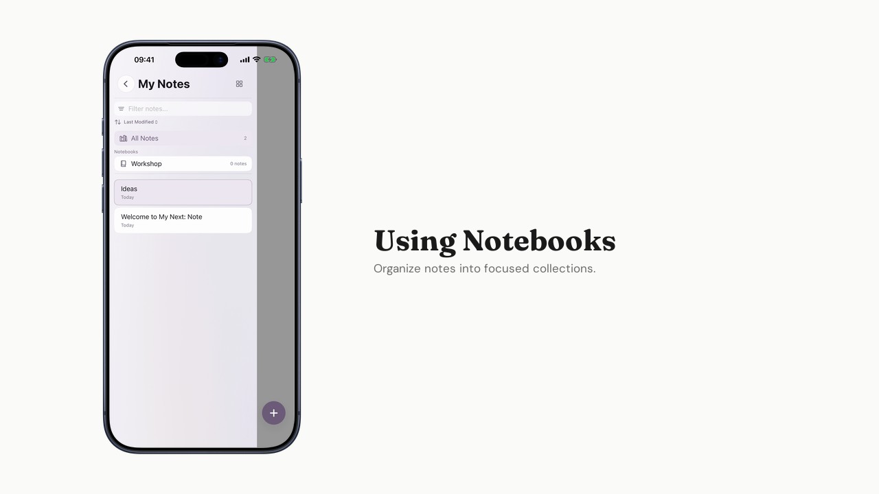 Group notes into Notebooks for focused collections.